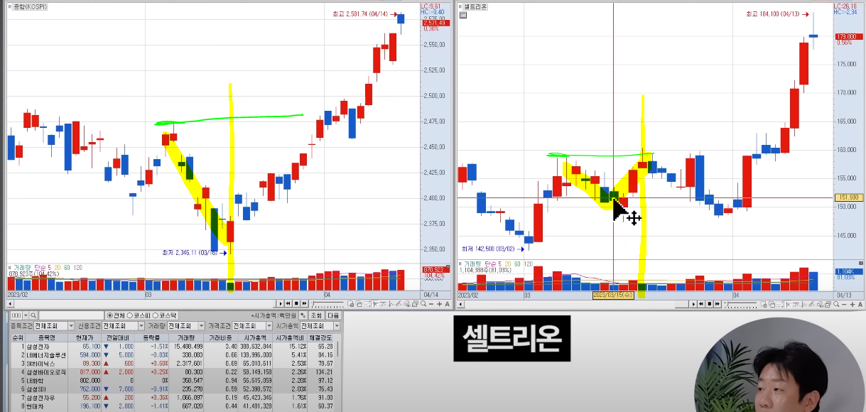 셀트리온 지수가 빠지는데 셀트리온은 전고점을 뚫음. 지수보다 훨씬 강하다. 바이오 주들중에서 찾아보자.